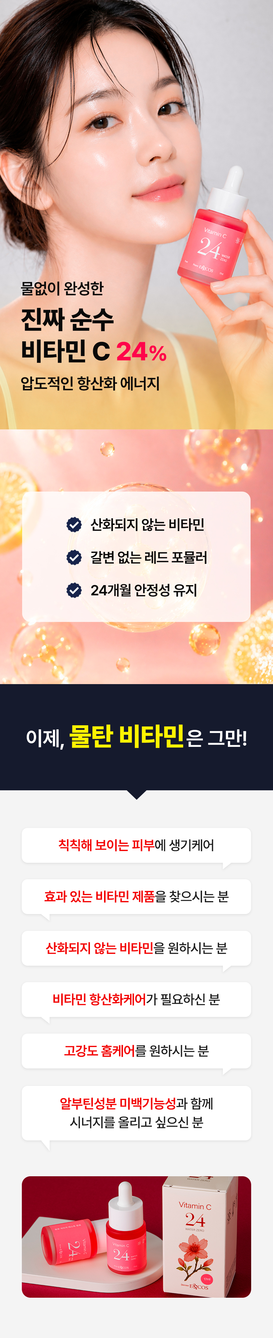 | 제품명 | 안색 올리는 고함량 순수비타민C24% 워터제로 앰플 17ml | 용량 | 17 ml |